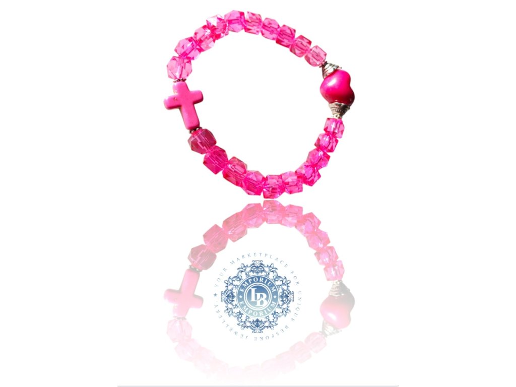 Elastický desiatok ruženca na ruku s krížikom a so srdiečkom. Materiál: plast a bižuterny kov bez niklu.