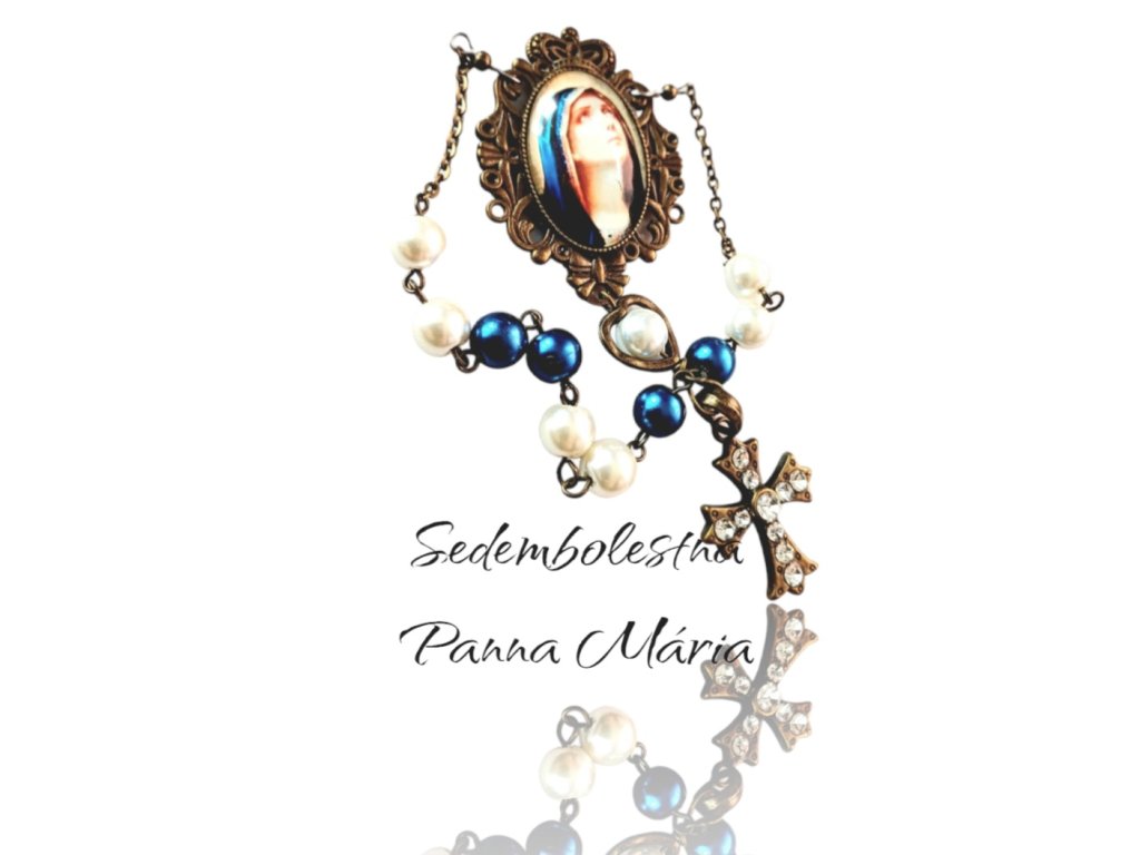 Ručne robený autorský ruženec do auta s medailónom Panny Márie Sedembolestnej.