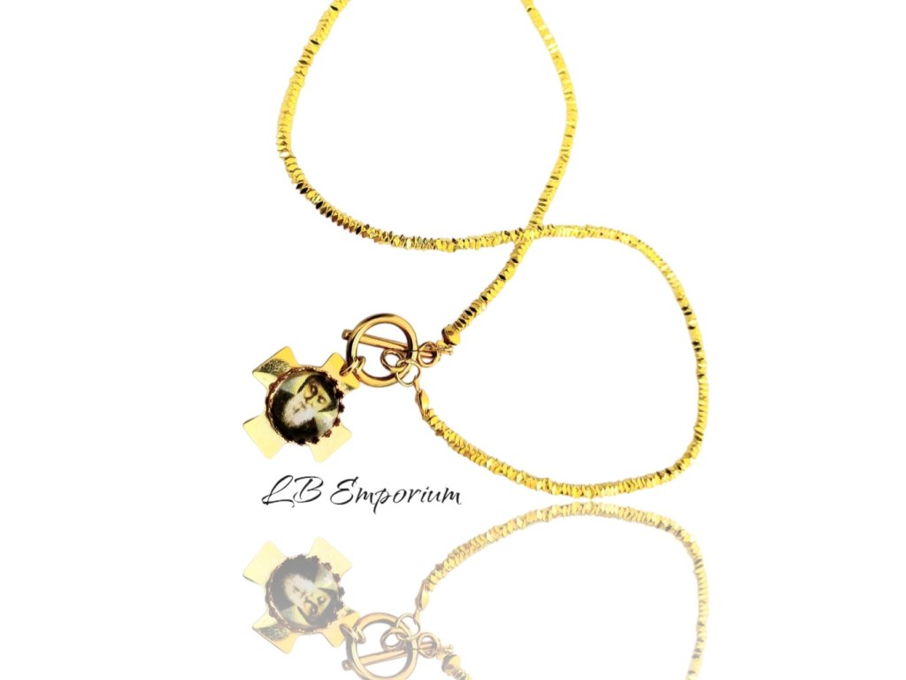 Svätý Charbel náhrdelník. Pozlátená chirurgická oceľ.