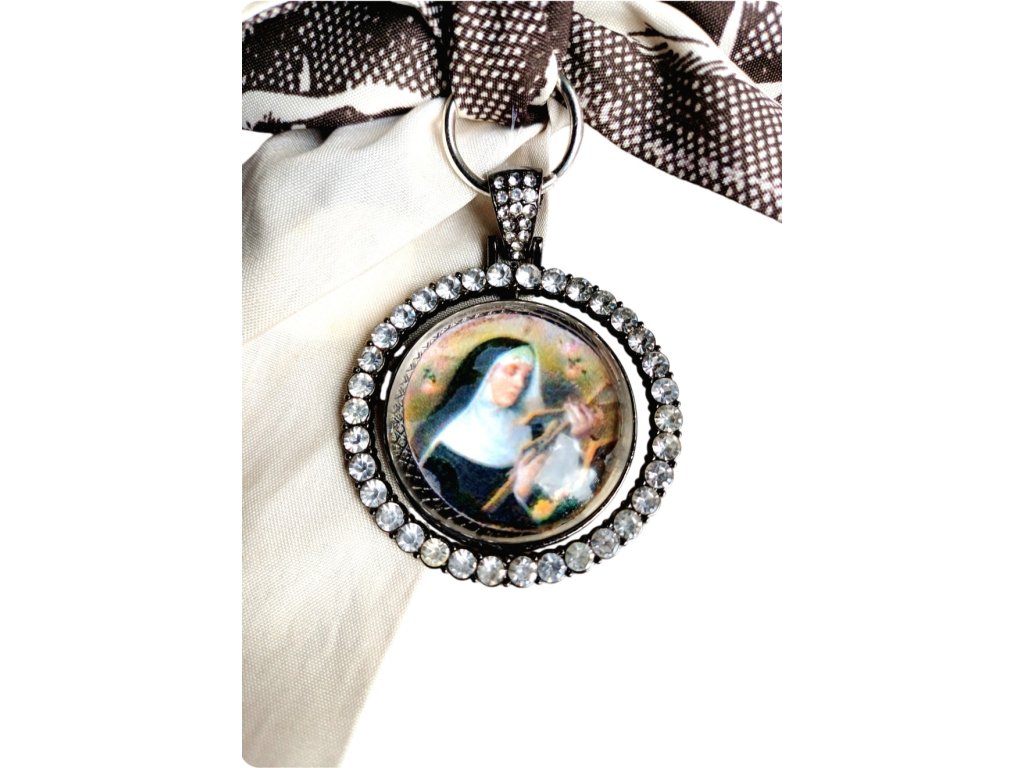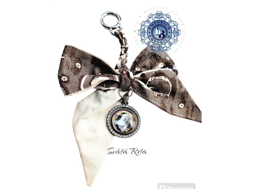 Prívesok na kľúče, kabelu s ručne robeným medailónom svätej Rity z Cascie.