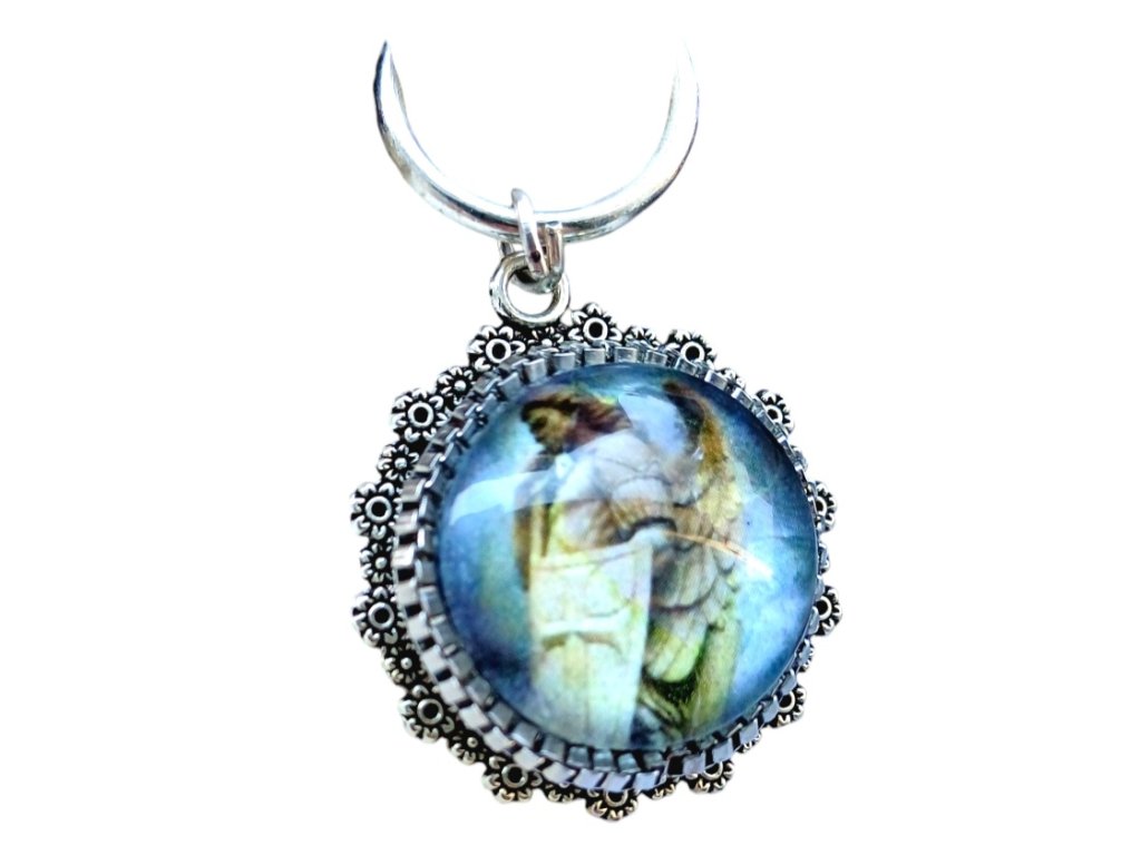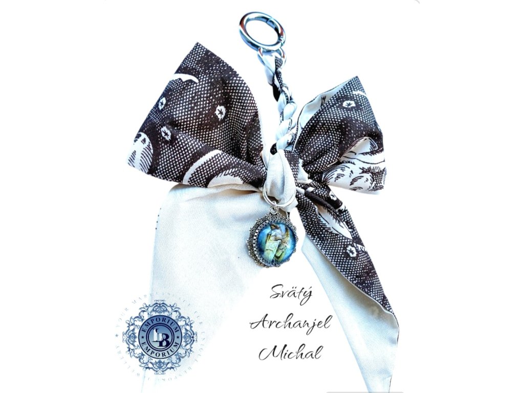 Svätý Archanjel Michal prívesok na kabelu, baťoh, kľúče, s veľkou mašľou.